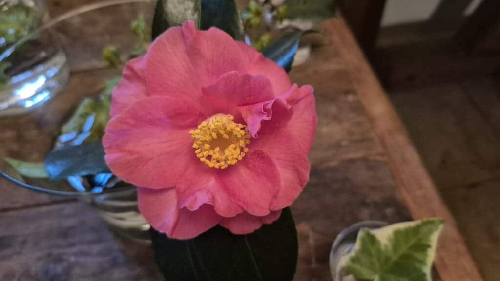 Die Menschen in Japan sind mit der Kamelie nicht so eng verbunden wie mit Kirschen, Bambus oder Kiefern. Trotzdem gehört sie zu den bedeutenden Blumen, schon weil man sie bei spirituellen und religiösen Zeremonien verwendet. Sie symbolisiert die Göttlichkeit und ist Sinnbild der Reinheit und des Strebens nach Harmonie.