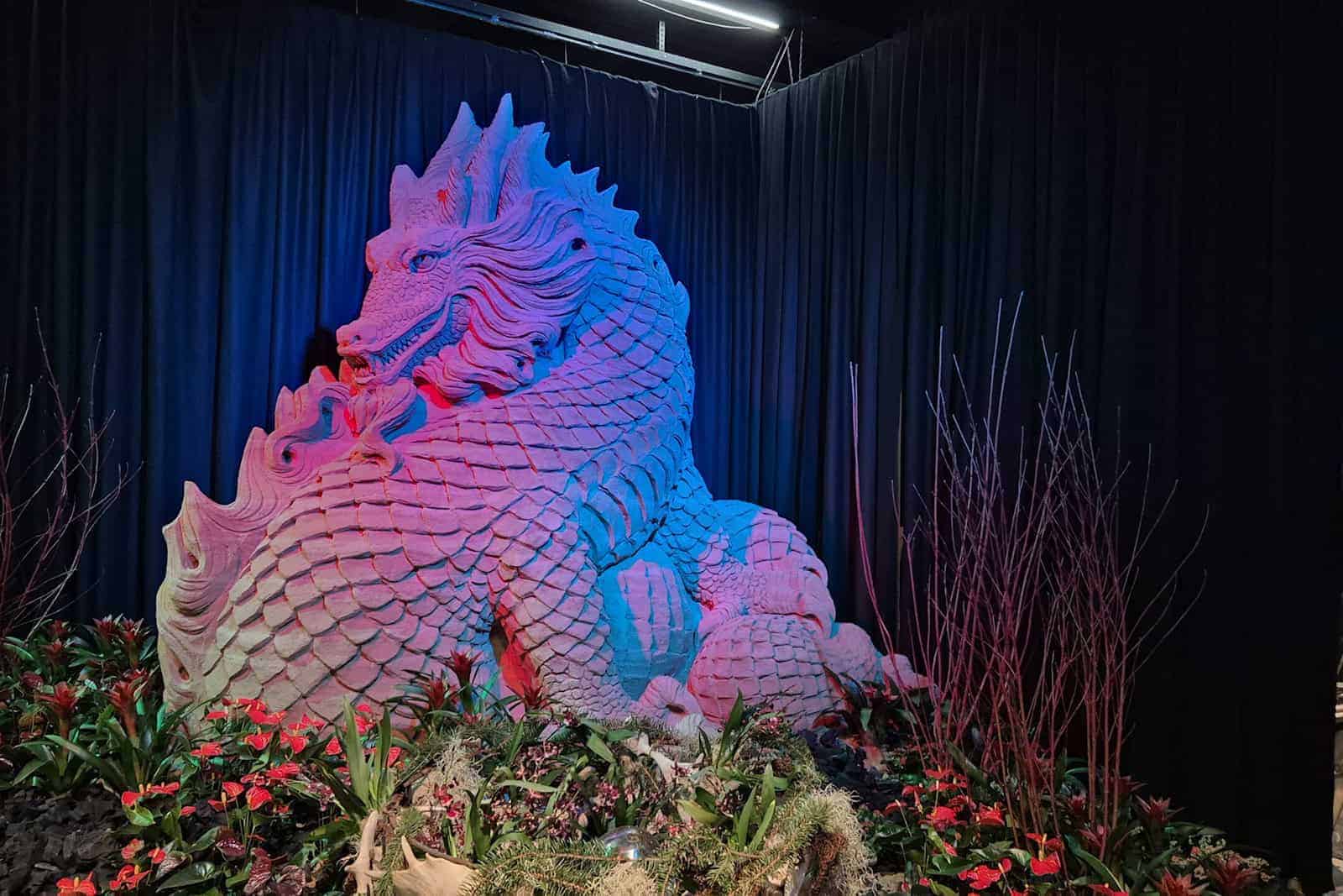 Im Freizeitpark „Oskarshausen“ verzaubert in der neuen „BlütenWunder“-Schau dieser Drache aus Sand. Foto: Katrin Koch