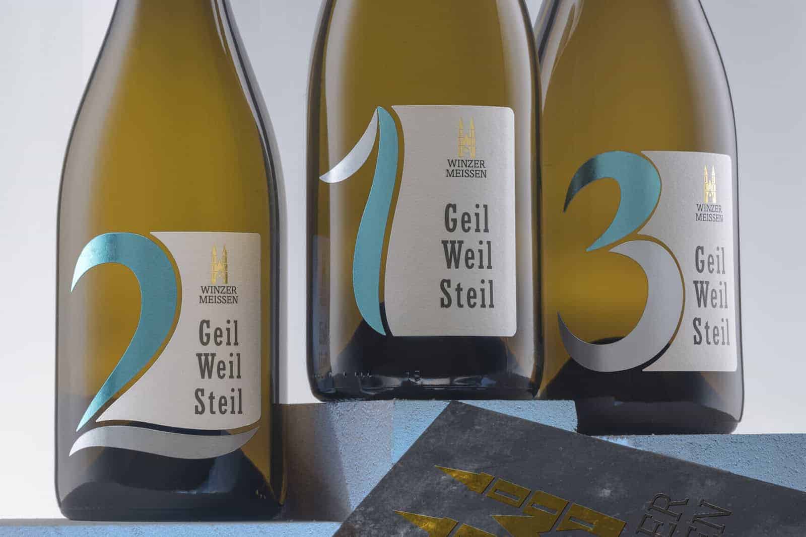 In der ersten Phase umfasst die Weinlinie „Geil Weil Steil“ drei trockene Weißweine aus dem Bereich Meissen, die von Kellermeisterin Natalie Weich mit viel Expertise und Fingerspitzengefühl verarbeitet wurden. „Die Zahlen auf den neuen Etiketten unserer Flaschen sind kein Zufall“, erläutert der Geschäftsführer der Sächsischen Winzergenossenschaft Meissen eG, Lutz Krüger. „‚Geil 1‘ steht für eine Rebsorte, die allein eine harmonische und ausgewogene Weinstruktur bietet. ‚Geil 2‘ beschreibt eine Cuvée aus zwei ausgewählten Rebsorten, die sich perfekt ergänzen und dem Wein zusätzliche Komplexität verleihen. Und ‚Geil 3‘ beschreibt die höchste Ausbaustufe und kombiniert drei verschiedene Rebsorten zu einem besonders vielschichtigen und charaktervollen Wein.“